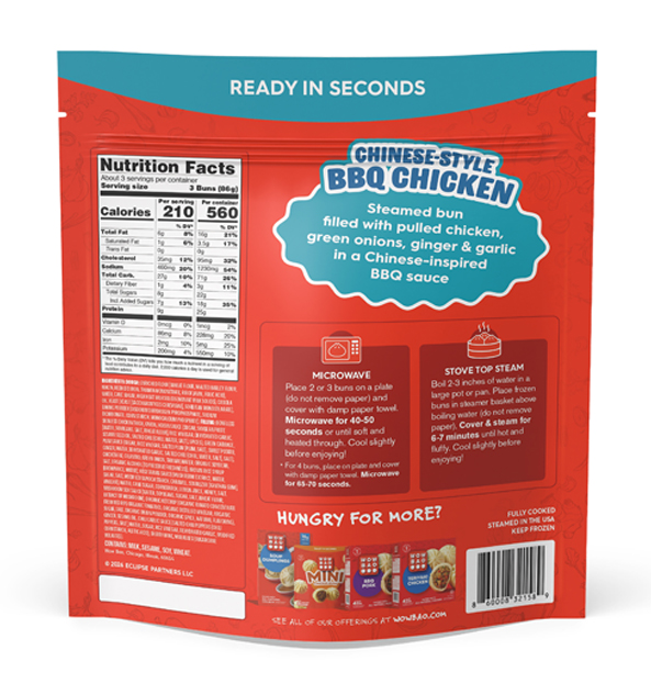 Bao is the perfect portable snack or meal! Once prepared, simply peel off the paper and savor every bite. With so much flavor packed inside Wow Bao’s signature bao, it is the perfect on-the-go solution to feed any need.